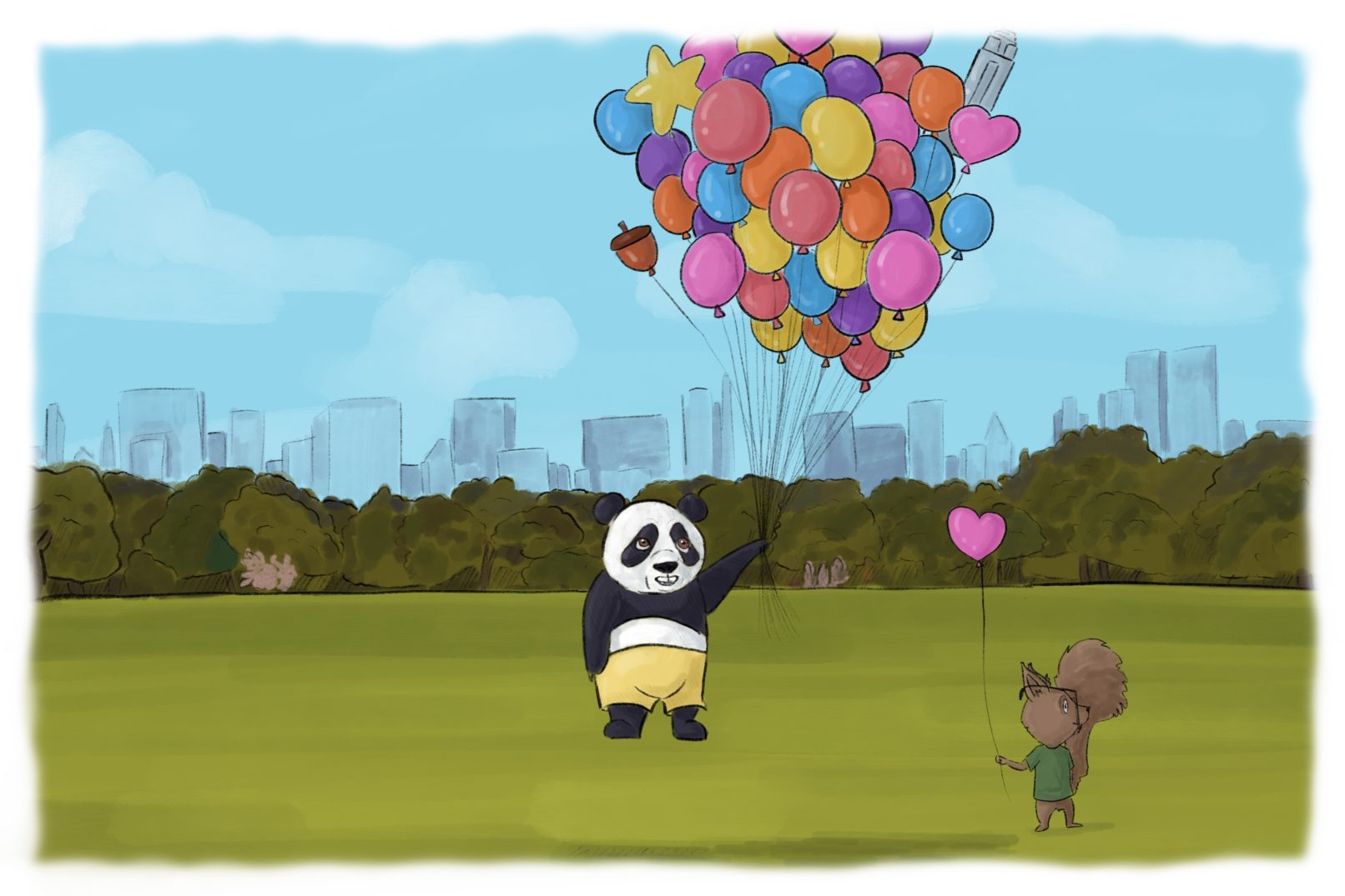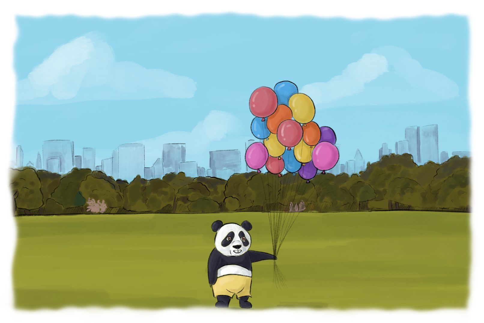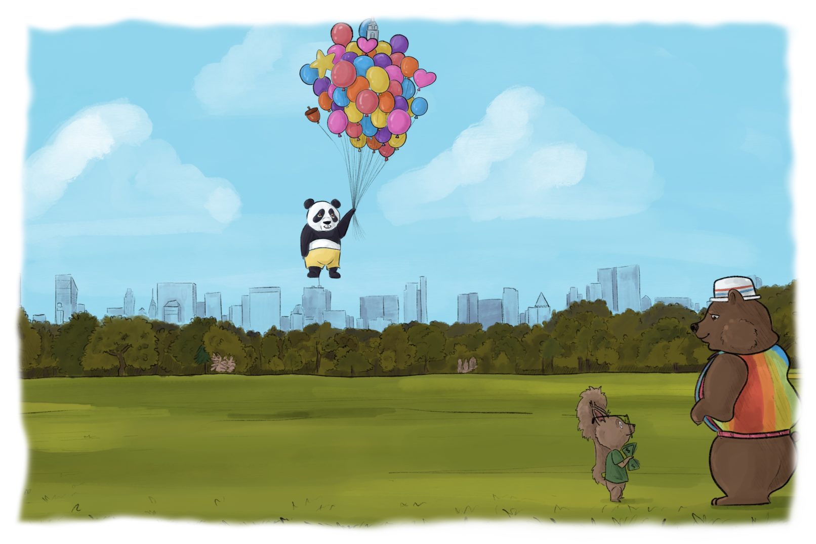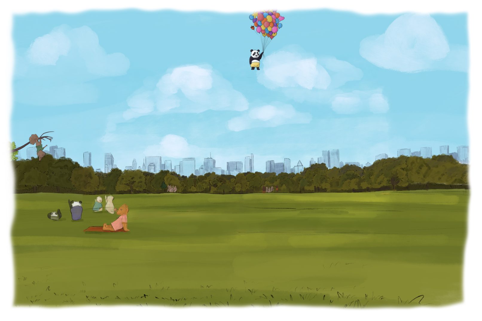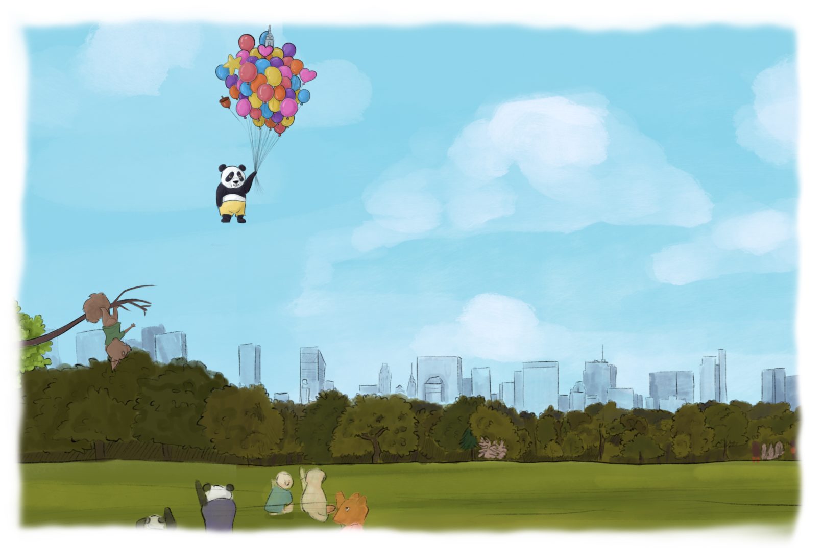 Baby Panda floated up over the Great Lawn and could see all of Central Park. He saw the Met Museum, the baseball fields, the skating rink, the rowboat pond, the sailboat bond, the castle, but could no longer see his friends.