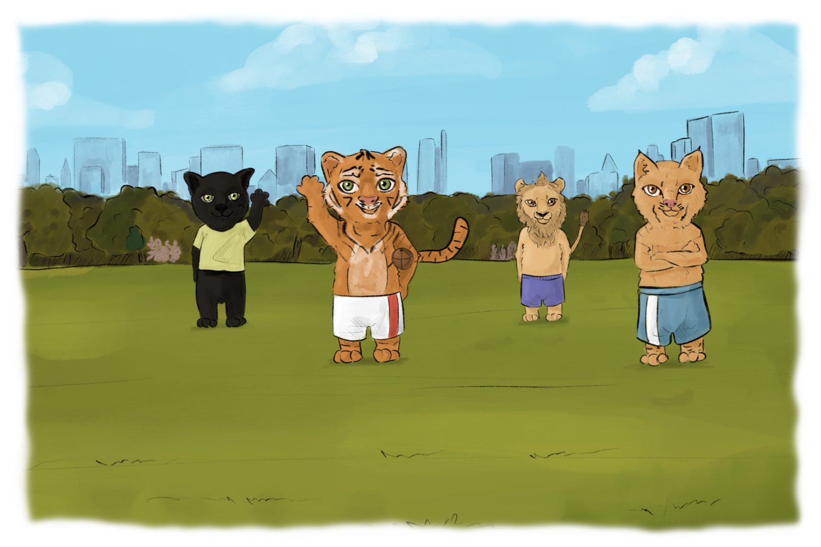 Just then there was a clamor coming from the Great Lawn. A lot of (people) were shouting for Tiger’s attention. It was his older brother and his friends. They were on the grass playing football and wanted Tiger to go say hello.